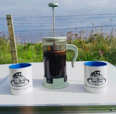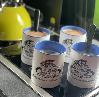 We had an ace trip in Minty. Thoughtful touches and a well kitted out van made it a breeze. Thanks to Derbyshire Camper Hire for the lovely souvenir mugs!
