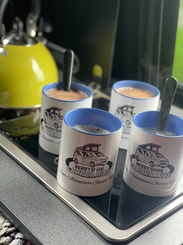 and finally the most important - FREE Derbyshire Camper Hire Mugs to use for the duration of your adventure and to take home !!!!!!!!