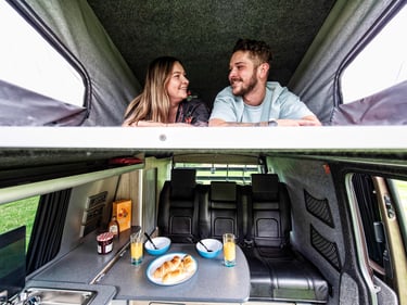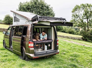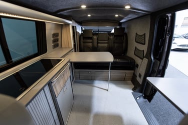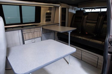 Toffee is based on a 4Motion LWB VW Transporter and has been expertly fitted out, the Long Wheel Base give you that extra room inside.